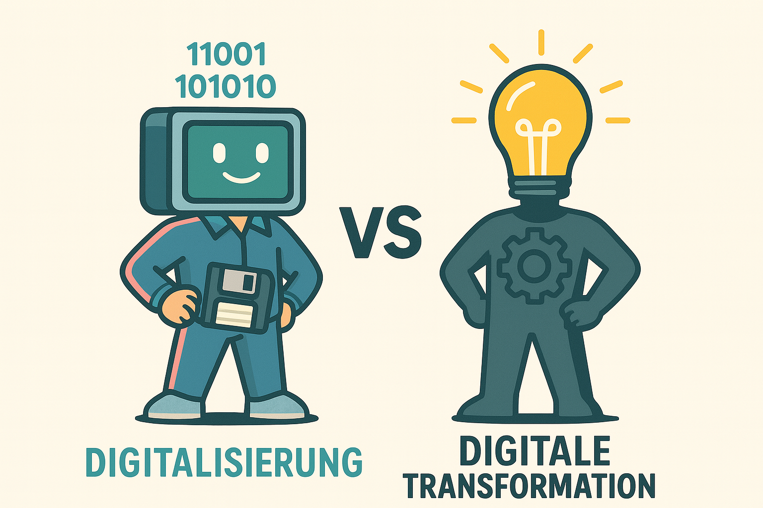 Begriffe wie Digitalisierung und digitale Transformation werden oft gleichgesetzt, dabei beschreiben sie zwei grundverschiedene Ebenen. Wer die Unterscheidung versteht, erkennt auch, warum manche Digitalprojekte ins Leere laufen, während andere echten Wandel bewirken.